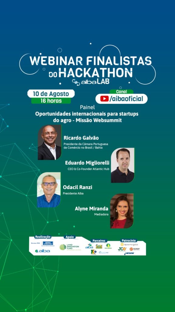 No evento contaremos também com o painel "Missao Websummit - Oportunidades internacionais para startups do Agro" com os especialistas Ricardo Galvão, Presidente da Câmara Portuguesa no Brasil/Bahia e Eduardo Migliorelli, CEO e Co-fundador da Atlântic Hub.