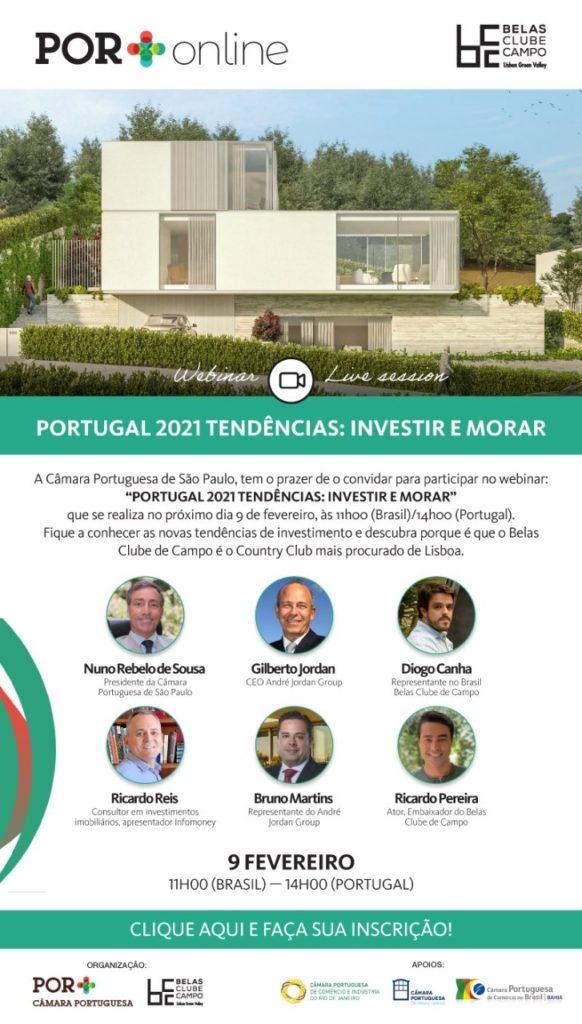 A Câmara Portuguesa de São Paulo convida a todos para participar no webinar: “PORTUGAL 2021 TENDÊNCIAS: INVESTIR E MORAR”